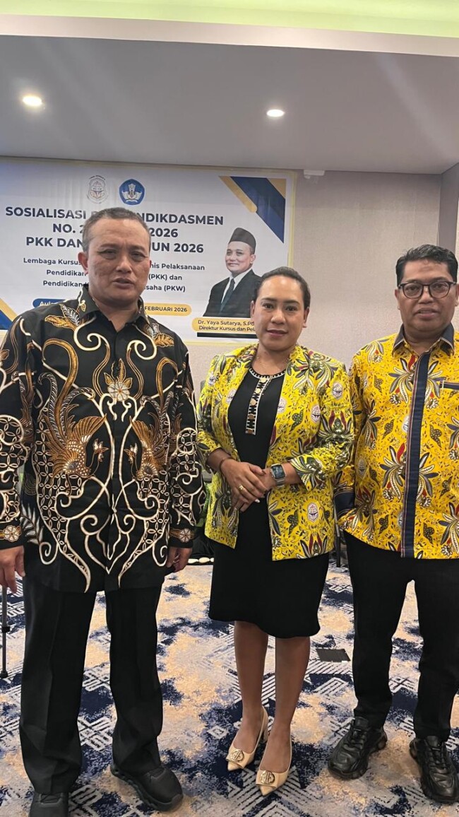Sosialisasi diikuti para Direktur Lembaga Kursus dan Pelatihan (LKP) dari berbagai daerah di Nusa Tenggara Timur (NTT). Kegiatan tersebut berlangsung di Hotel Harper Kupang, Jumat (28/2/26).