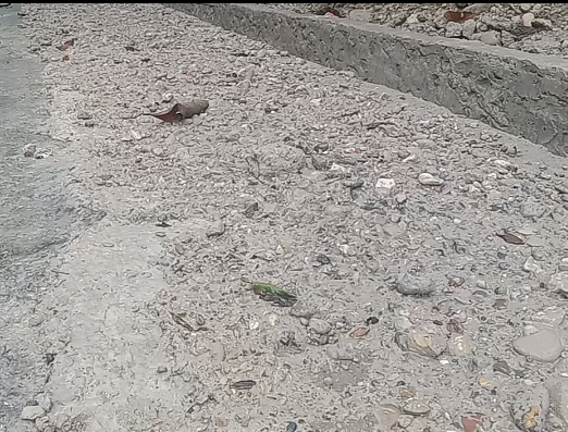 Di sejumlah titik bahkan ditemukan keretakan pada rabat jalan. Permukaan rabat juga tampak memperlihatkan batu kerikil, yang mengindikasikan mutu pekerjaan belum maksimal.