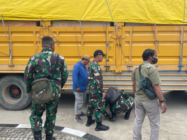 Dari hasil koordinasi tersebut, Satgas Yonif 741/GN Pos Motamasin bersama aparat lainnya berhasil mengamankan 1 unit truk besar DH 8179 EH.