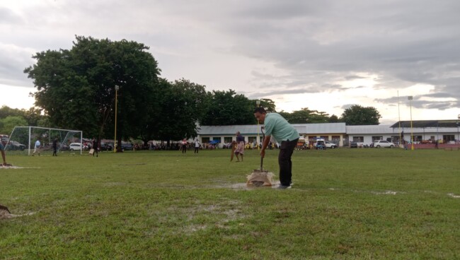 “Masyarakat sangat antusias menonton pertandingan, sehingga apa pun caranya akan dilakukan untuk mengeringkan lapangan,” tegasnya.